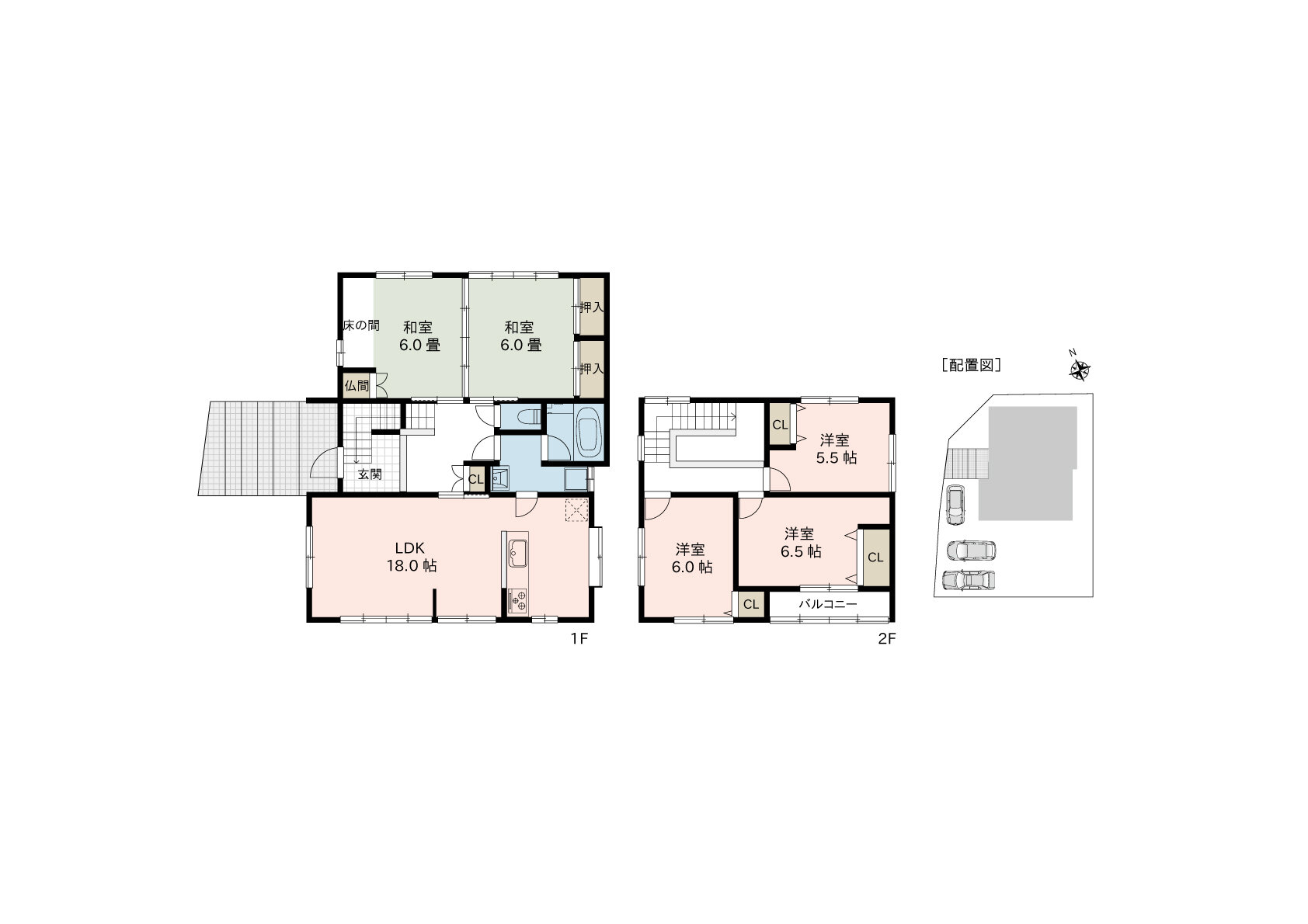 1Fは6畳の和室が2箇所