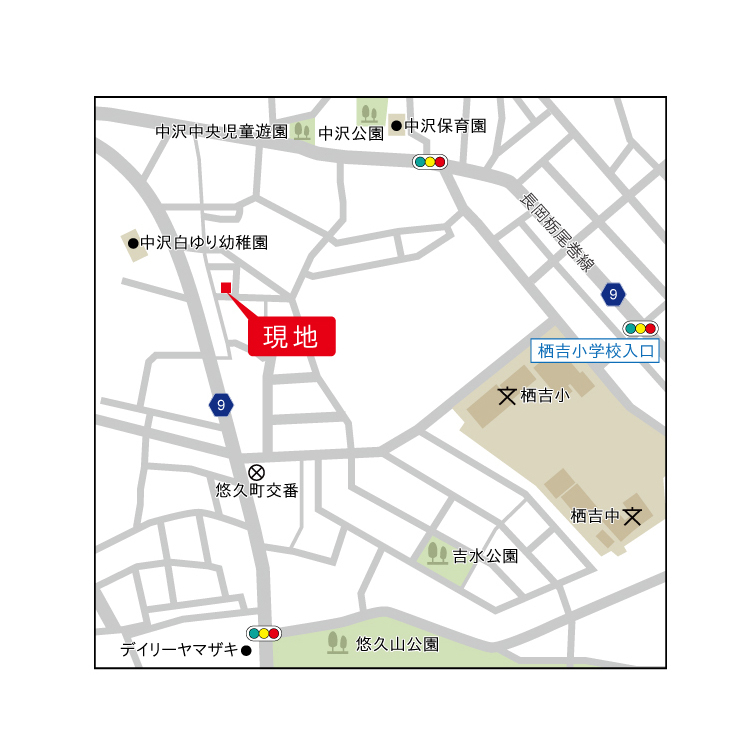 | 周辺施設 | ◇デイリーヤマザキ(長岡悠久山店):約540m ◇セブンイレブン(長岡中沢4丁目店):約650m ◇ナルス(美沢店):約1.4km ◇クスリのアオキ(三沢店):約1.4km ◇中沢白ゆり幼稚園:約150m ◇私立中沢保育園:約470m ◇中沢中央児童遊園:約330m ◇中沢公園:約470m ◇長岡栖吉郵便局:約1.1km ◇私立中央図書館:約1.6km |
