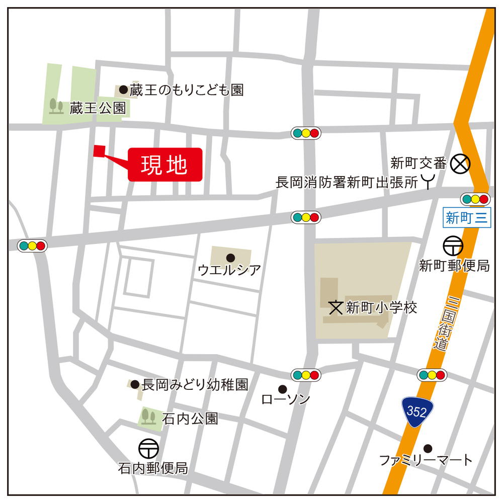 | 周辺施設 | ◇ローソン(長岡石内一丁目店):約740m ◇ウエルシア(長岡泉店):約380m ◇チャレンジャー(北長岡店):約700m ◇原信マーケットシティ新保:約1.9km ◇蔵王のもりこども園:約100m ◇みのり幼稚園:約620m ◇蔵王公園:約90m ◇長岡石内郵便局:約680m |