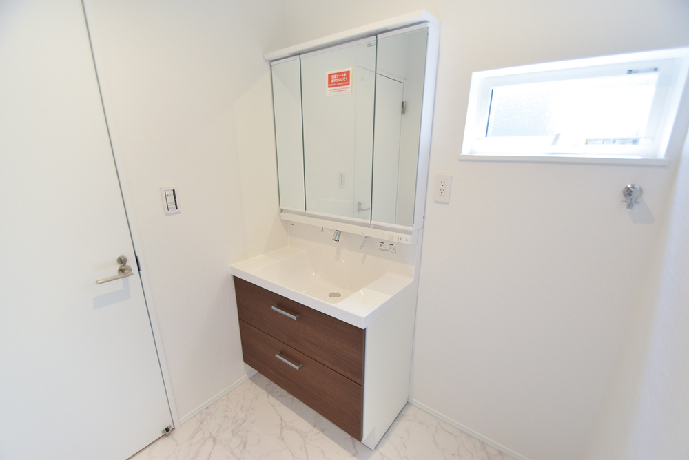 身支度に嬉しい3面鏡仕様。鏡裏も含めたっぷりとした収納スペースを確保。収納豊富な洗面台は水回りをスッキリ片づけられます。