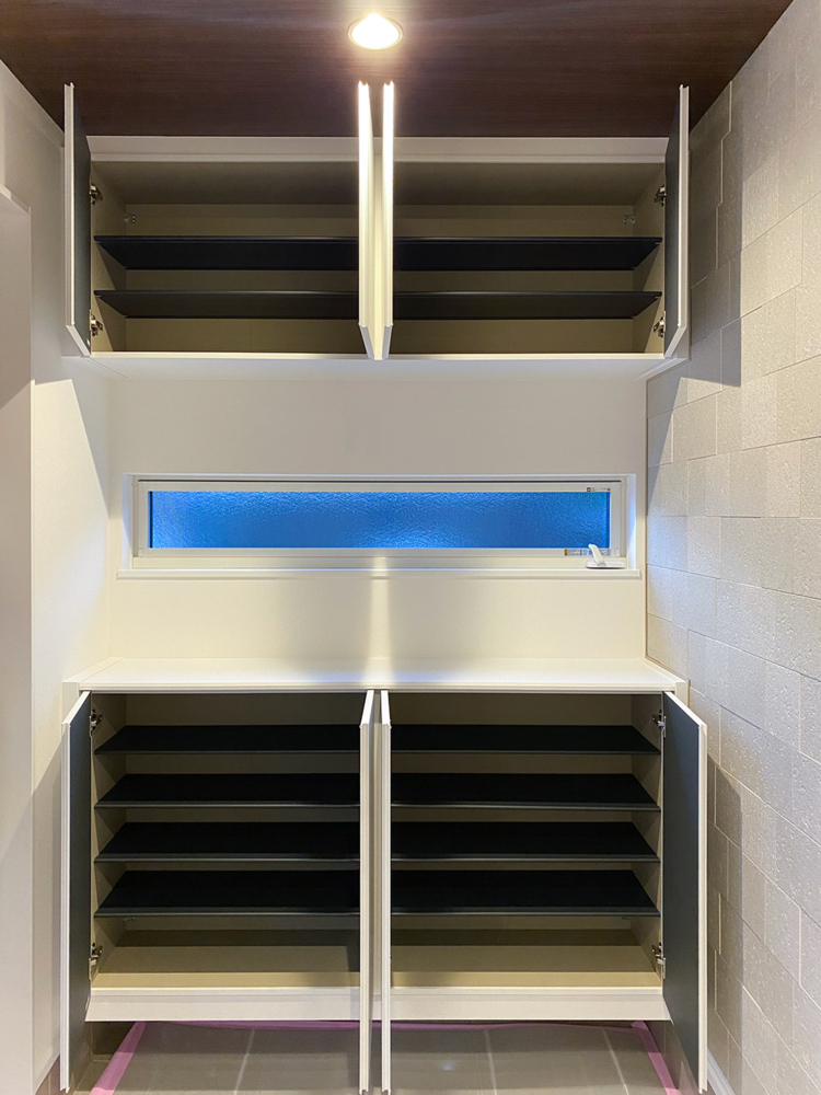 大型のシューズボックスには靴やブーツ、ハンカチや手袋、バッグ類などお出かけ用品、印鑑や朱肉なども収納可能です。