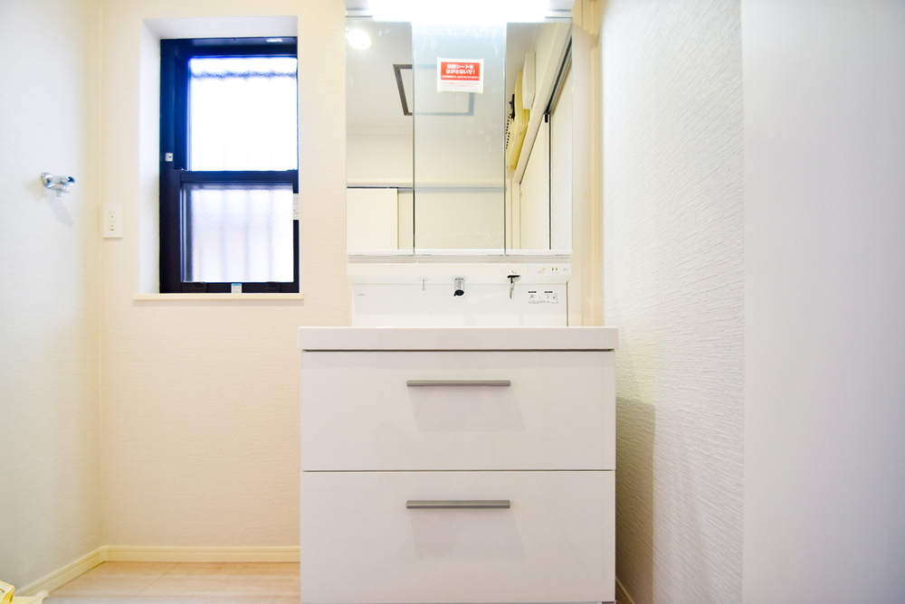 身支度に嬉しい3面鏡仕様。鏡裏も含めたっぷりとした収納スペースを確保。収納豊富な洗面台は水回りをスッキリ片づけられます。