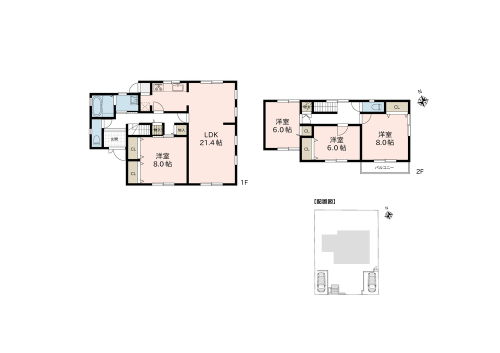 駐車スペースを2台確保。前面道路は約6mで車の出し入れも安心。
